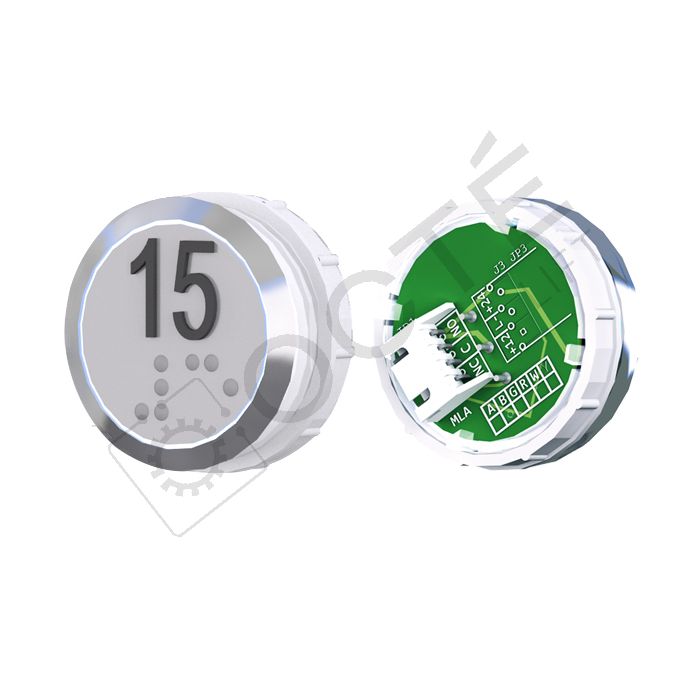 Bouton VEGA Achille Cat. 1 (EN81-71) pour boîtes à boutons cabine TOPAZ. Compatible VERSO et Équipage, adapté au remplacement à l’identique ou pour remplacer un bouton non antivandale.