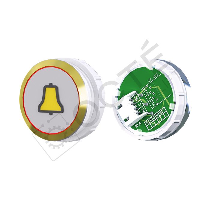 Bouton VEGA Achille Cat. 1 (EN81-71) pour boîtes à boutons cabine TOPAZ. Compatible VERSO et Équipage, adapté au remplacement à l’identique ou pour remplacer un bouton non antivandale.