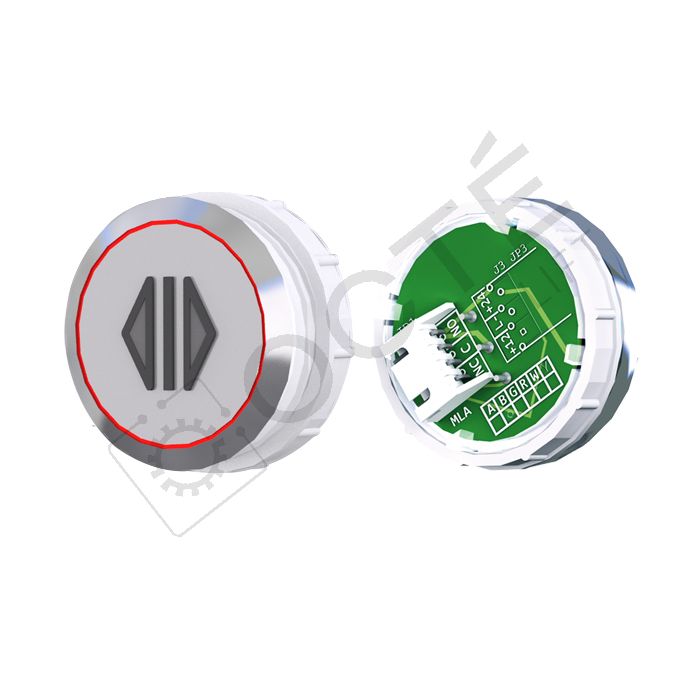 Bouton VEGA Achille Cat. 1 (EN81-71) pour boîtes à boutons cabine TOPAZ. Compatible VERSO et Équipage, adapté au remplacement à l’identique ou pour remplacer un bouton non antivandale.
