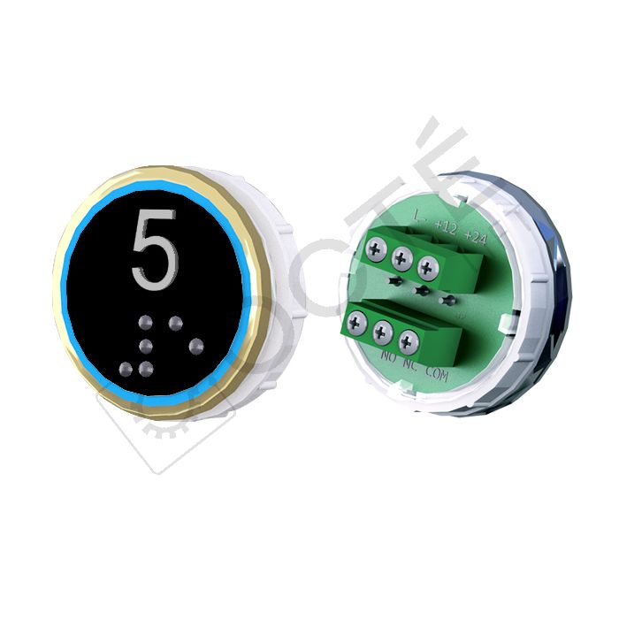 Bouton VEGA Venus XL pour boîtes à boutons cabine TOPAZ. Version bornier à vis 12/24V, raccordable à toute armoire acceptant une entrée contact sec, adapté au remplacement à l’identique.