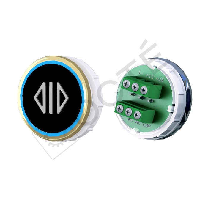 Bouton VEGA Venus XL pour boîtes à boutons cabine TOPAZ. Version bornier à vis 12/24V, raccordable à toute armoire acceptant une entrée contact sec, adapté au remplacement à l’identique.