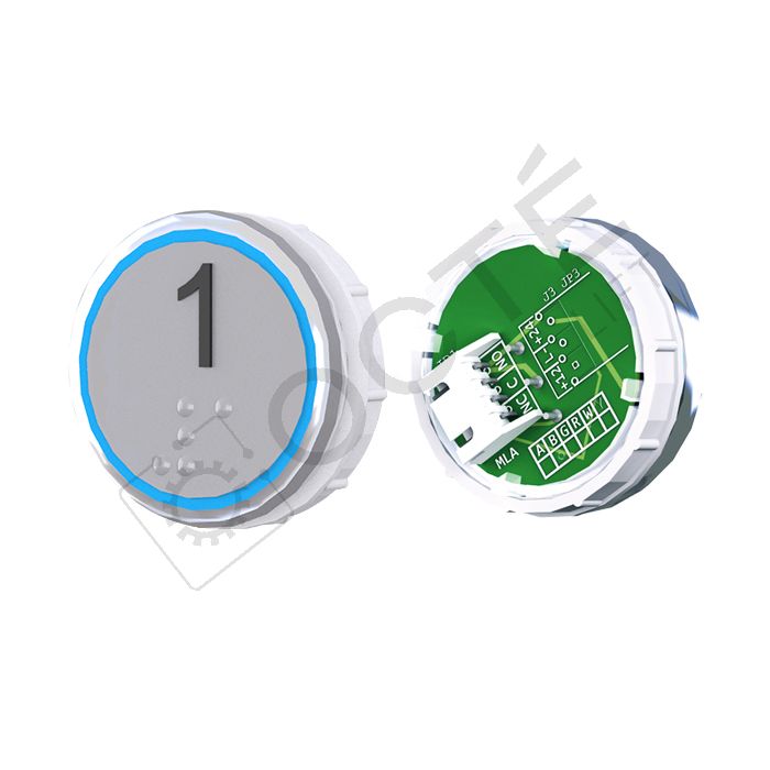 Bouton VENUS XL Braille Col. Inox fond gris JST bleu 1