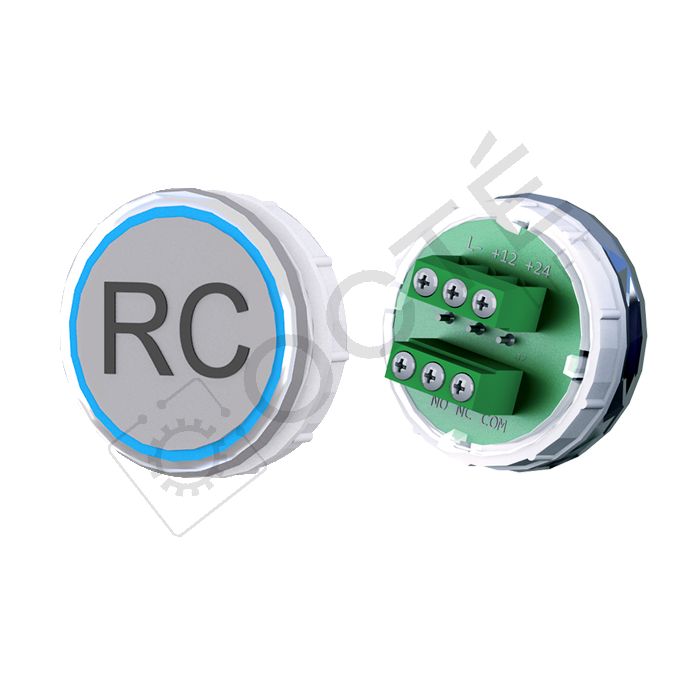 Bouton VEGA Venus XL pour boîtes à boutons cabine TOPAZ. Version bornier à vis 12/24V, raccordable à toute armoire acceptant une entrée contact sec, adapté au remplacement à l’identique.