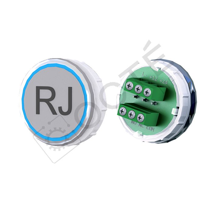 Bouton VEGA Venus XL pour boîtes à boutons cabine TOPAZ. Version bornier à vis 12/24V, raccordable à toute armoire acceptant une entrée contact sec, adapté au remplacement à l’identique.