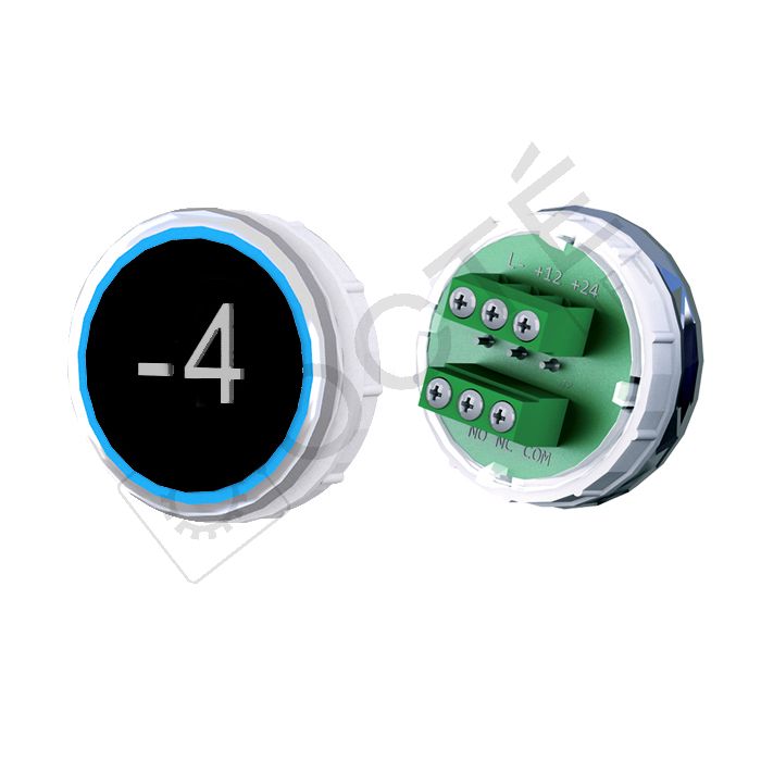 Bouton VEGA Venus XL pour boîtes à boutons cabine TOPAZ. Version bornier à vis 12/24V, raccordable à toute armoire acceptant une entrée contact sec, adapté au remplacement à l’identique.