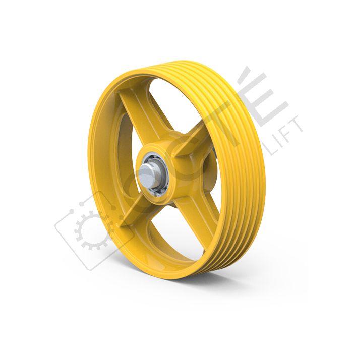 Poulie à goussets Ø600 4xØ13 P=22 axe Ø55 O=146 EE=123 S=000