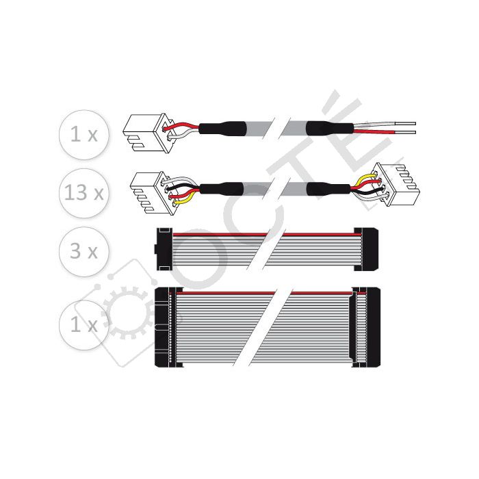• 13 c?bles avec connecteurs 4 points (L 80 cm) pour boutons envoi cabine, ouverture, fermeture, alarme et t?lealarme
